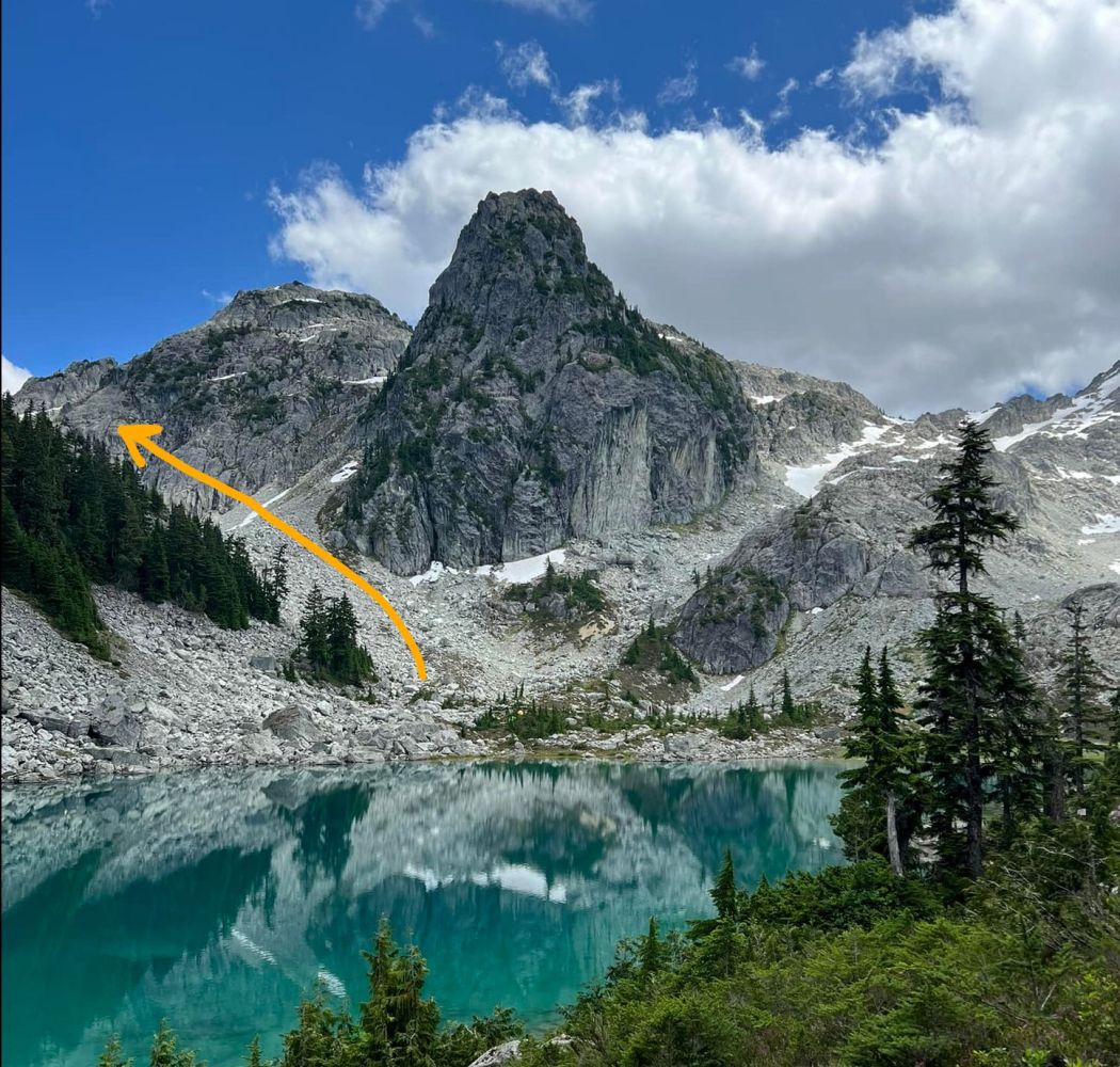 1. Watersprite Lake, new trail from campsite to Dreadnought col